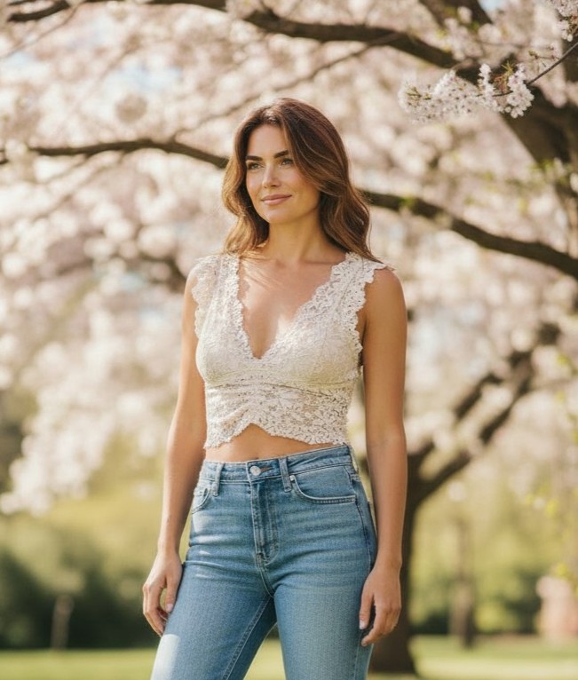 Realizzato in delicato pizzo lavorato, presenta uno scollo a V profondo che esalta la silhouette, mentre il taglio corto dona un tocco moderno e sensuale. Le spalline larghe in pizzo aggiungono comfort e stile, rendendolo perfetto sia come capo intimo che come top protagonista.
