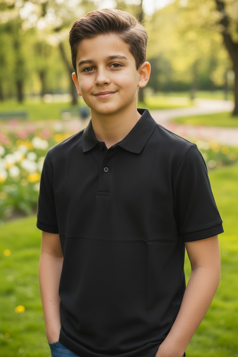 Il colore "nero profondo" e il taglio moderno la rendono ideale per outfit urban, perfetta da abbinare a cargo pants, jeans oversize o sneakers di ultima generazione. Realizzata in 100% cotone di alta qualità, garantisce una traspirabilità eccellente e una morbidezza sulla pelle che dura tutto il giorno, lavaggio dopo lavaggio .Disponibile nelle taglie junior dai 10 ai 16 anni, con un taglio studiato per seguire la crescita e offrire massima libertà di movimento. Colletto classico e chiusura a tre bottoni per un look pulito ma deciso.