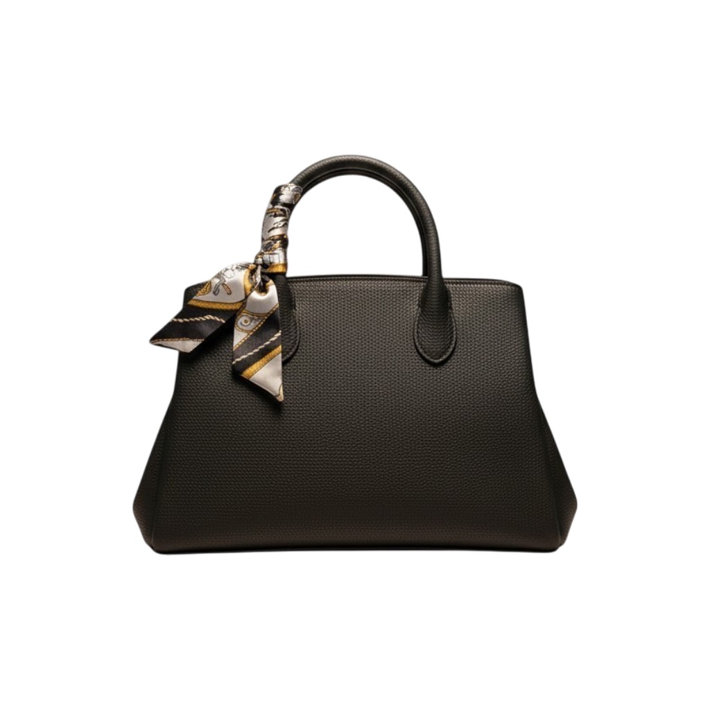 I doppi manici garantiscono una presa comoda, mentre il foulard decorativo aggiunge un elemento distintivo e di tendenza. L’interno è progettato per offrire praticità e ordine, permettendoti di portare con te tutto l’essenziale durante la giornata.