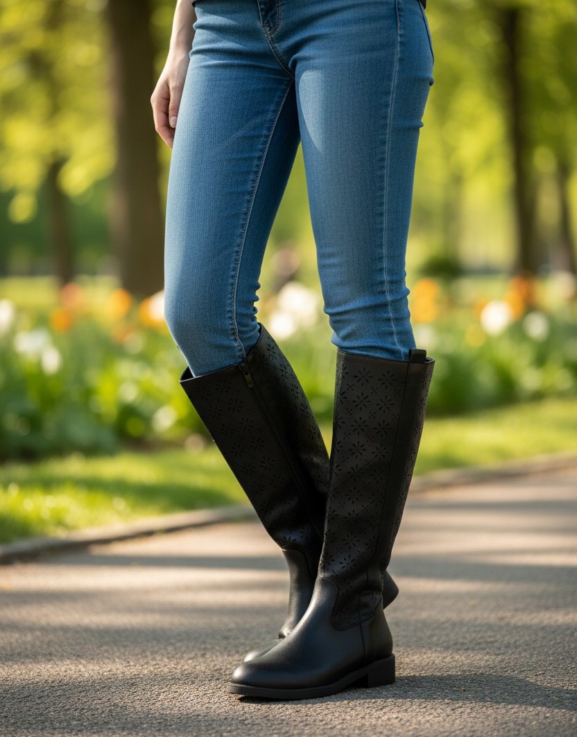 Stivali Alti Neri Donna Traforati – Eleganza Casual