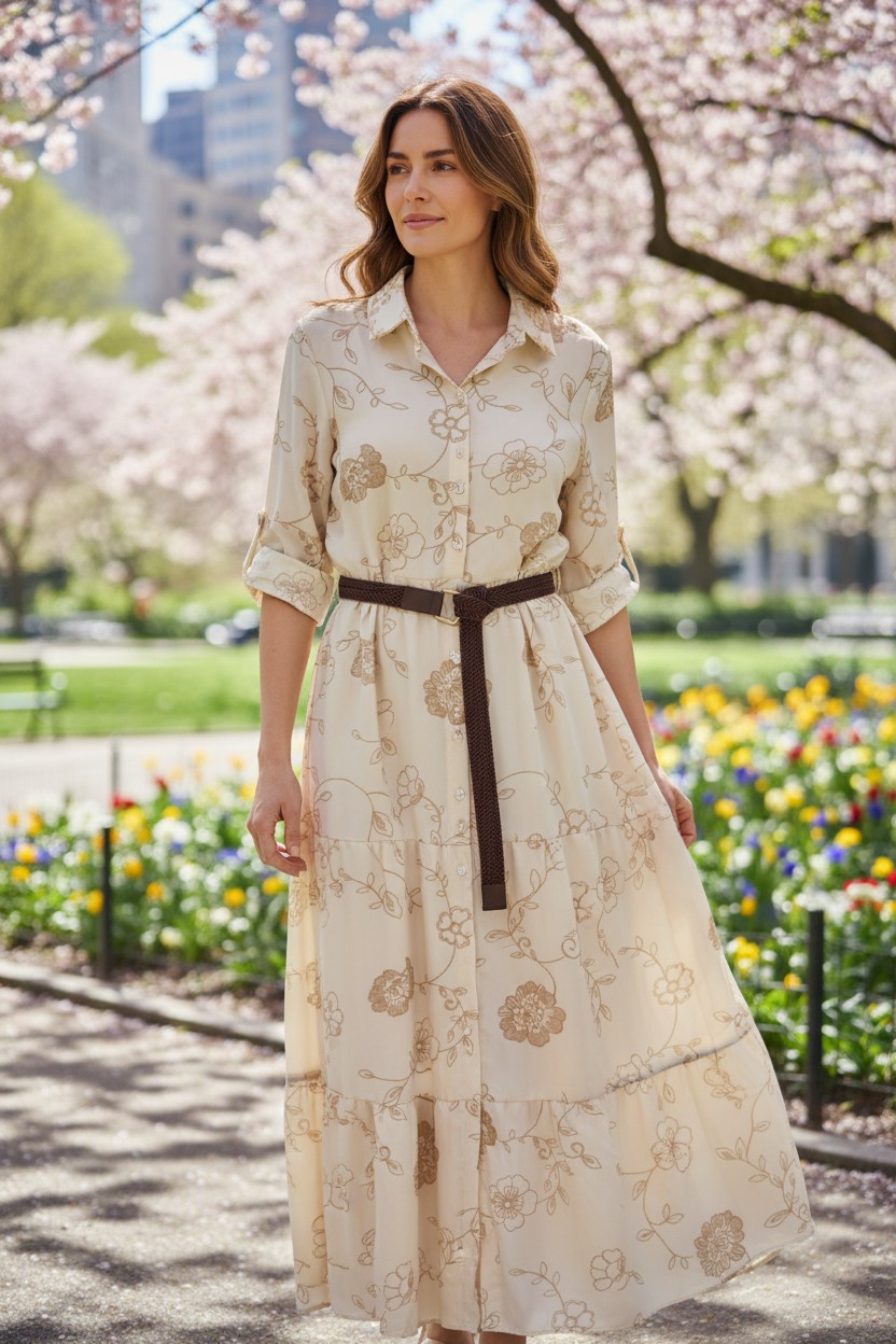 Scopri l’eleganza fresca e femminile di questo abito lungo estivo , perfetto per la bella stagione. Caratterizzato da manica 3/4, colletto classico e chiusura frontale con bottoni, unisce raffinatezza e comfort in un unico capo.