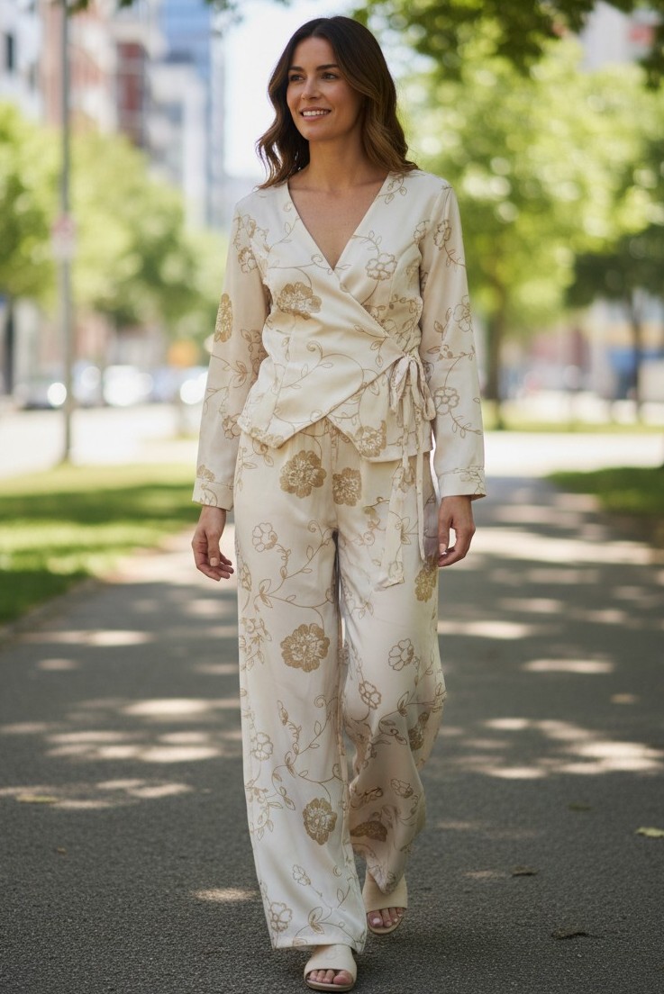Il tessuto leggero rende questo completo perfetto per la stagione primavera-estate, ideale per il tempo libero, le vacanze o per creare outfit casual chic.