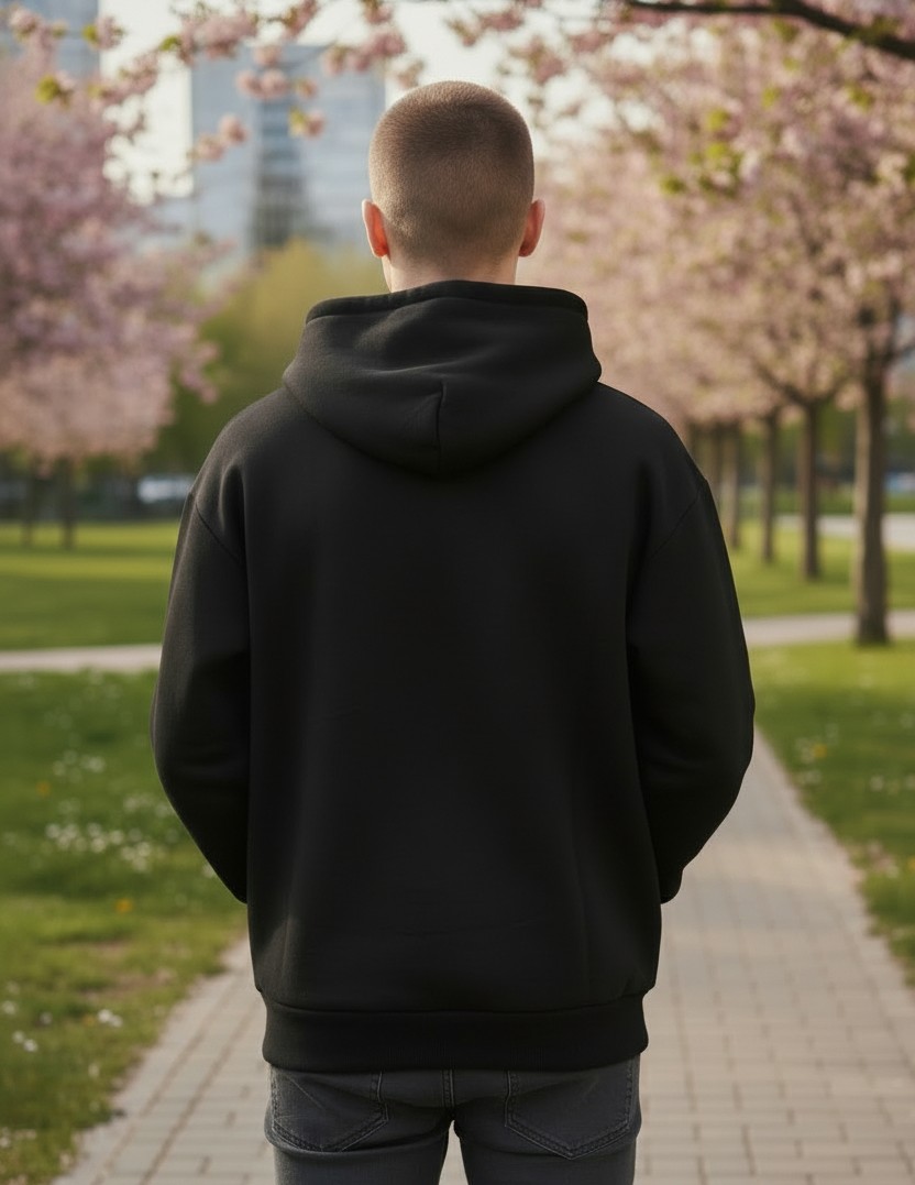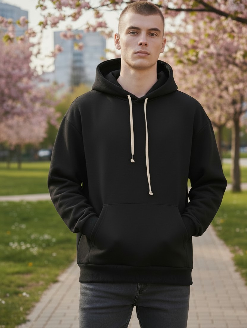 Felpa con cappuccio a tinta unita dal design deciso e contemporaneo, pensata per chi vuole distinguersi con uno stile urbano autentico.