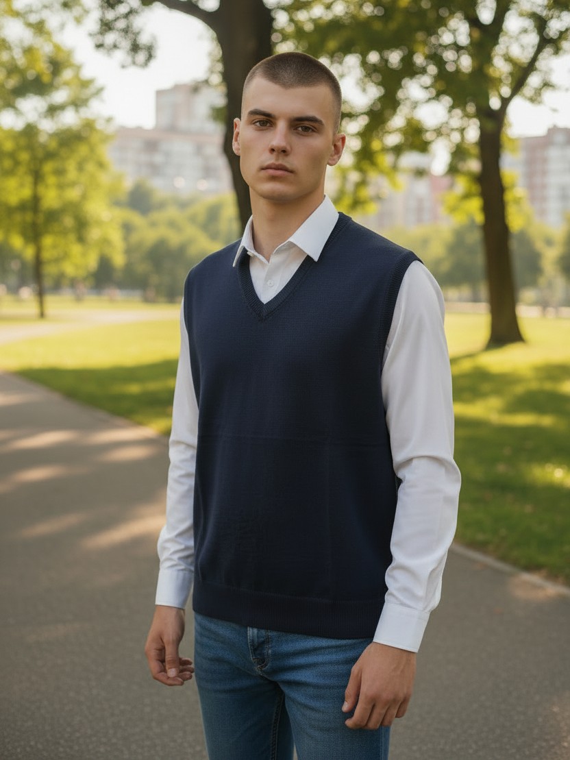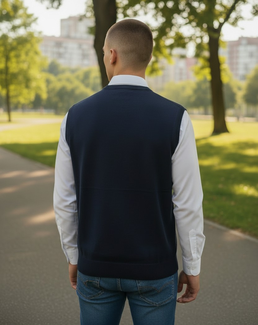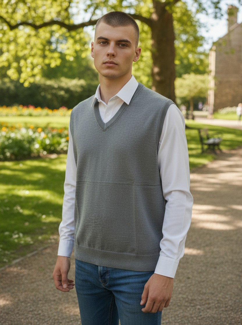 La vestibilità è studiata per adattarsi alla silhouette maschile senza risultare rigida, consentendo libertà di movimento e un’estetica moderna. Grazie alla sua versatilità, il gilet può essere indossato sopra una camicia per un look più elegante oppure abbinato a capi casual per uno stile contemporaneo.
