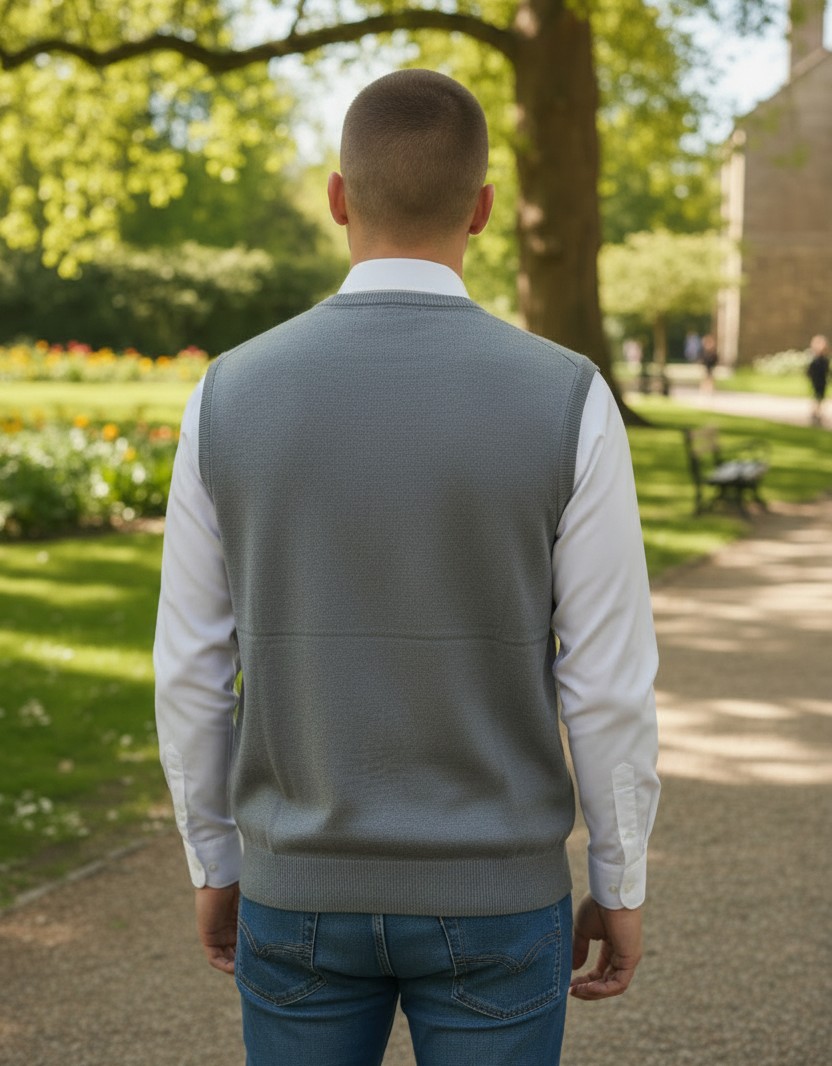 Il design essenziale del gilet lo rende un capo ideale per outfit raffinati ma informali. Una soluzione perfetta per arricchire il look maschile con eleganza discreta.