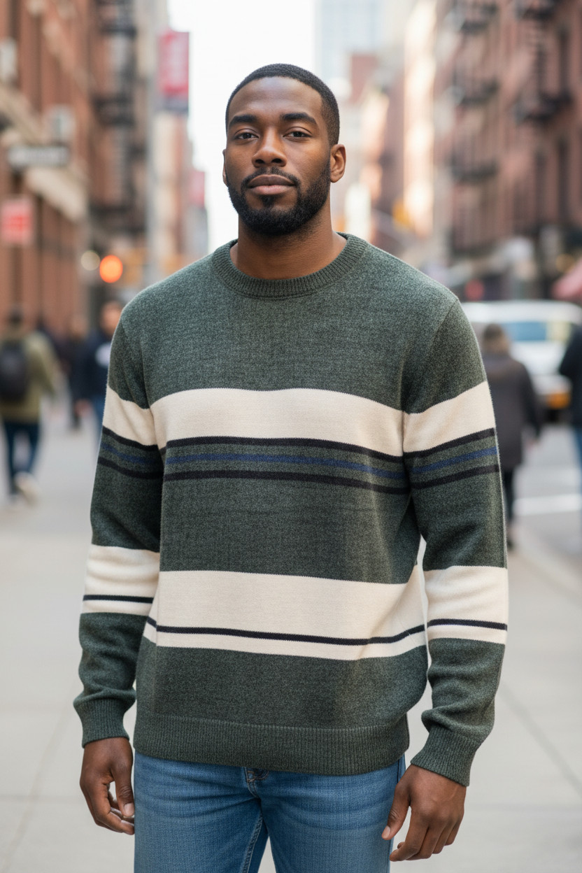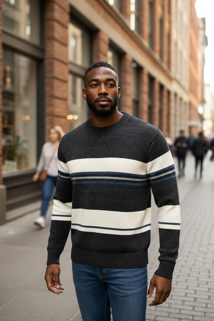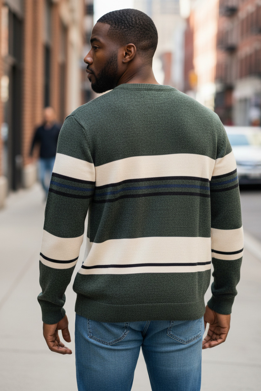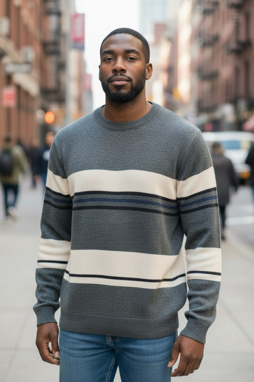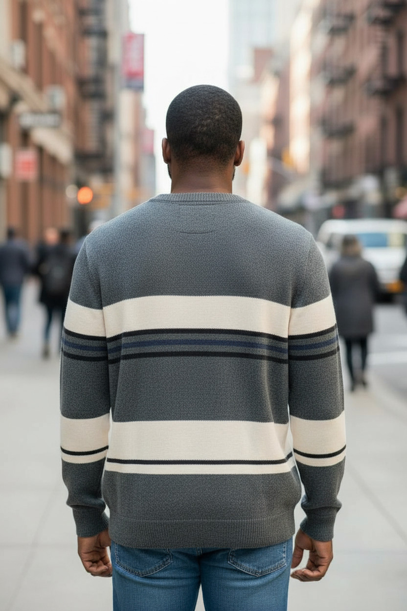 Maglione Uomo Righe Casual Il design a righe dona dinamismo al capo mantenendo uno stile casual moderno e facilmente abbinabile.