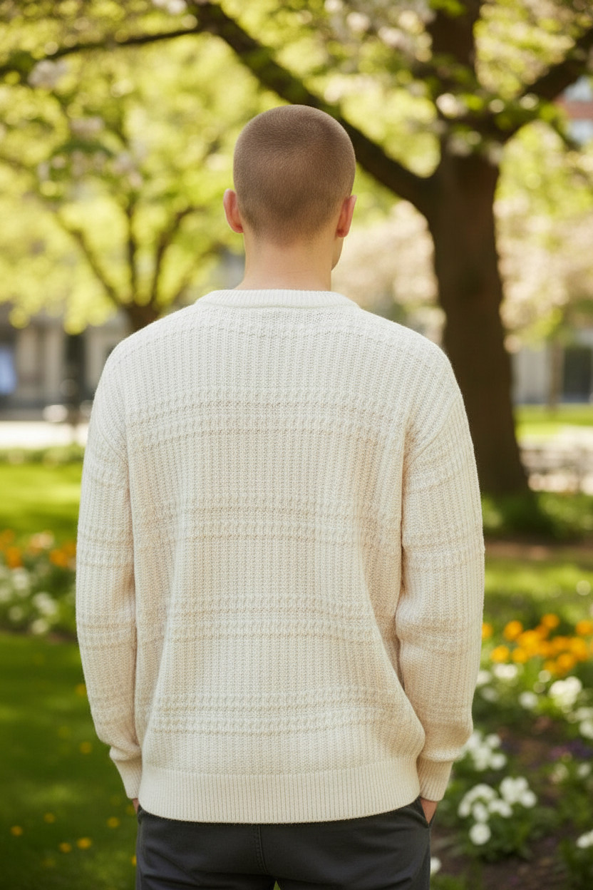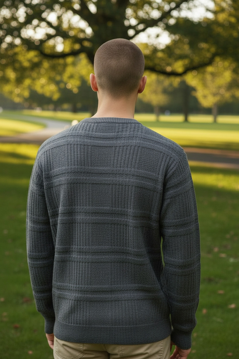 Maglione Uomo Girocollo Casual Il design girocollo e le linee essenziali rendono questo maglione perfetto per outfit casual moderni e versatili.