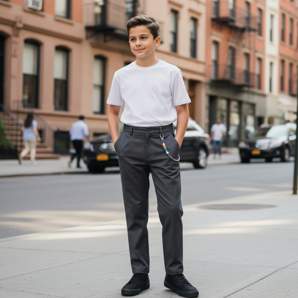 Il pantalone in tessuto STILL è stato progettato per risolvere il dilemma tra eleganza e comodità. Grazie alla sua struttura resistente e al taglio moderno, si propone come il capo versatile per eccellenza, capace di mantenere una linea sartoriale pur adattandosi ai ritmi energici dei più piccoli.